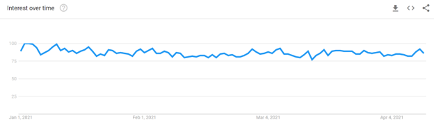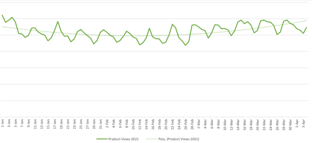 Using Google Trends as a macro view on people searching for the term “Amazon” we saw a decline of approximately 7% across the first months of 2021.